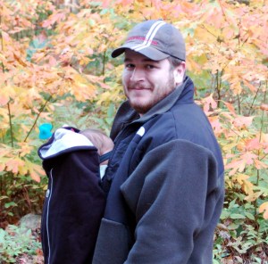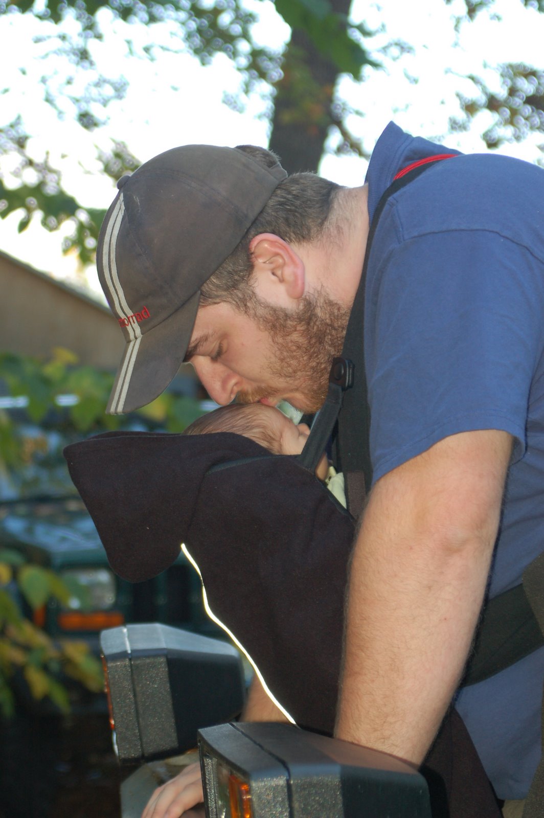 With the unseasonably warm weather we took the baby out for her first walk in the neighborhood for some “leaf peeping.” Dan had to defend her little head from all the falling acorns, good thing she was in the bjorn!