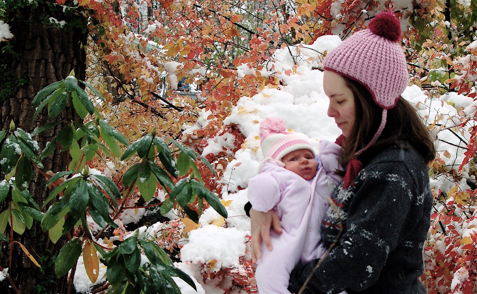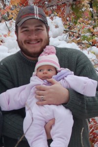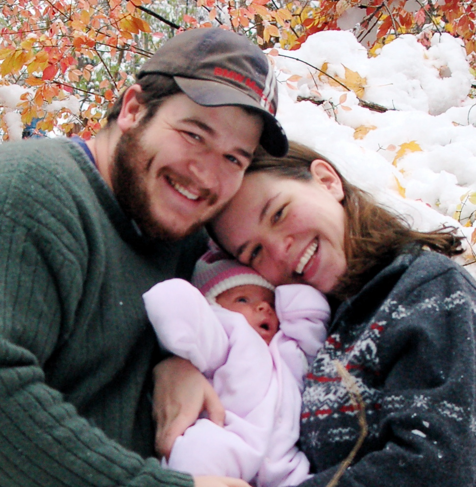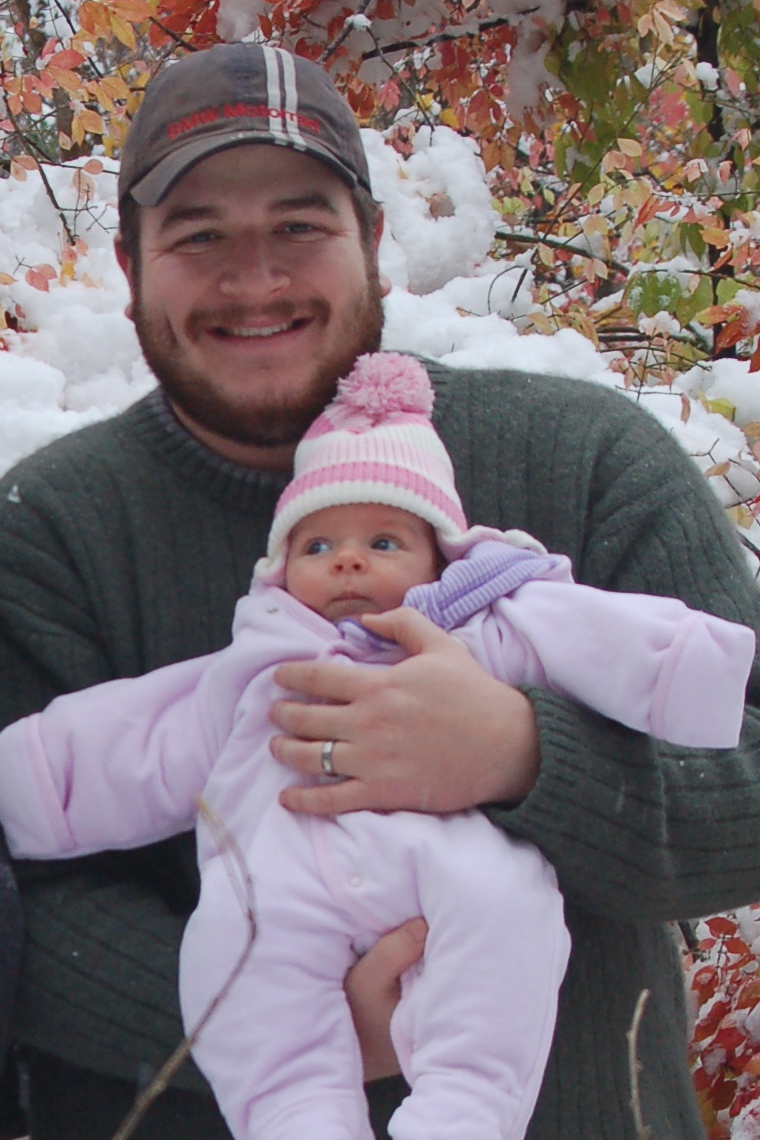 Yay! And this one really counts! We received about 5″ and local schools were closed. Dan worked from home today and we decided to trek outside and try for a family “snow day” picture. As you can see in this cropped version Claire was just thrilled about