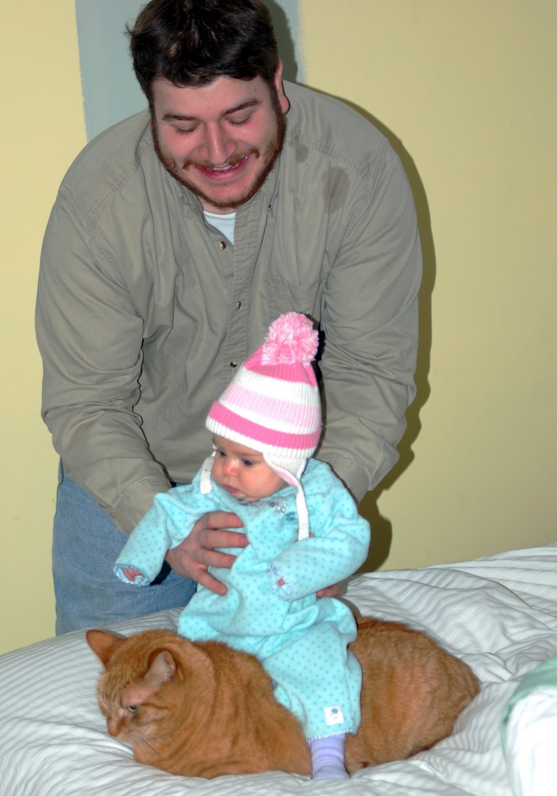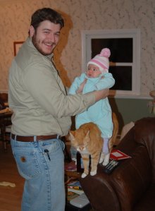 Poor kiddo had to have 2 shots today so she obviously wasn’t in the mood for a photo shoot. Here’s a few silly ones from yesterday. Dan thinks we should find a miniature saddle for her. Our kitties are such good sports!