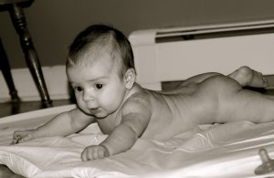 OK, baby Claire, tell Mommy to put some clothes on you and take some more pretty pictures. I did see some new dimples on this photo.