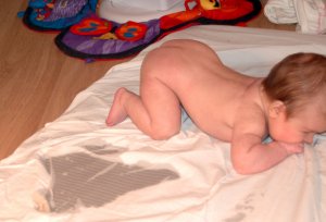 A very bitable butt. It does look like she wants to crawl. Look out mom and dad!!!