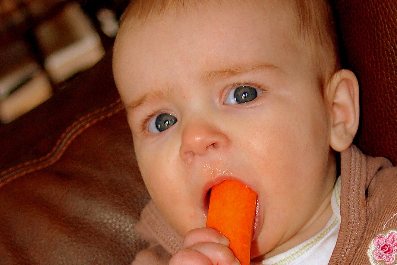 After a repeat performance of the 3AM howls on Sunday night, I marched her off to the doctor (ugh…the dreaded “sick child” waiting room) and he recommended trying a carrot to gnaw on. Oh, did I forget to mention she no longer wants anything in her mouth, including me? If you’ve nursed a child before – you know it’s a mutual need to nurse. Eeek…I was about ready to explode.