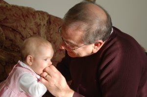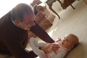 Enjoy these photos of Claire with her Grandbob. Can you believe she’s in a dress?! Dan kept saying to her, “poor baby – this is worse than Halloween!” Ceil seems to think Claire is going to turn out to be a girly-girl and assures her granddaughter there will be lots of pedicures and manicures in her future. Note Claire’s new trick – sitting up unassisted (albeit for short periods of time). As always, click for full size images.