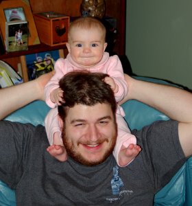We have a new trick guaranteed to get Claire laughing. Introducing the piggy back ride…there is just something so funny about being on Mommy or Daddy’s shoulders that cracks Claire up. AND if done in front of a mirror so she can better see your face as she pulls the “reins” (aka your HAIR) she’ll really get going.