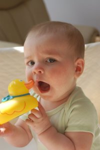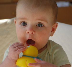Rubber ducky..you're so much fun…I love to chew on you in the sun!