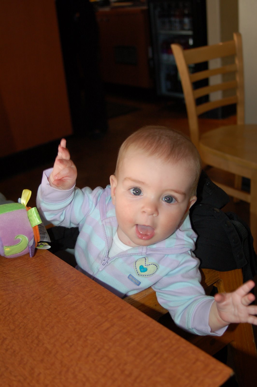 1. So when did she start crawling??? WOW – now she'll be into everything. Lock down those cabinets and block the stairs!!! We miss you Claire and cannot wait to see you.