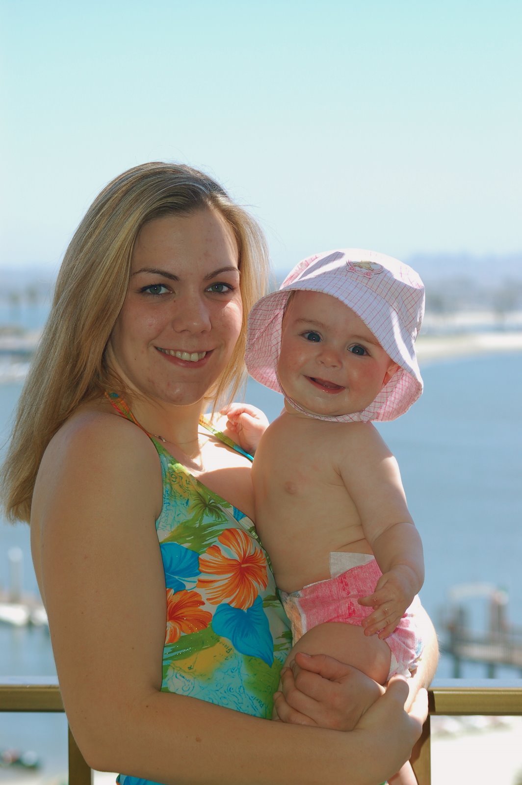 After a great flight with Claire (much to the relief of the passengers around us) we arrived at the Catamaran Resort right on Mission Beach in San Diego. It was a GREAT place to stay and we even got a suite upgrade through travelocity. When we arrived we found 2 double beds, not the king we were expecting so they moved us up to the seventh floor to gorgeous suite with ocean views. WOW! You’ve got to love that “roaming gnome.” Did I mention we had two balconies overlooking the ocean?