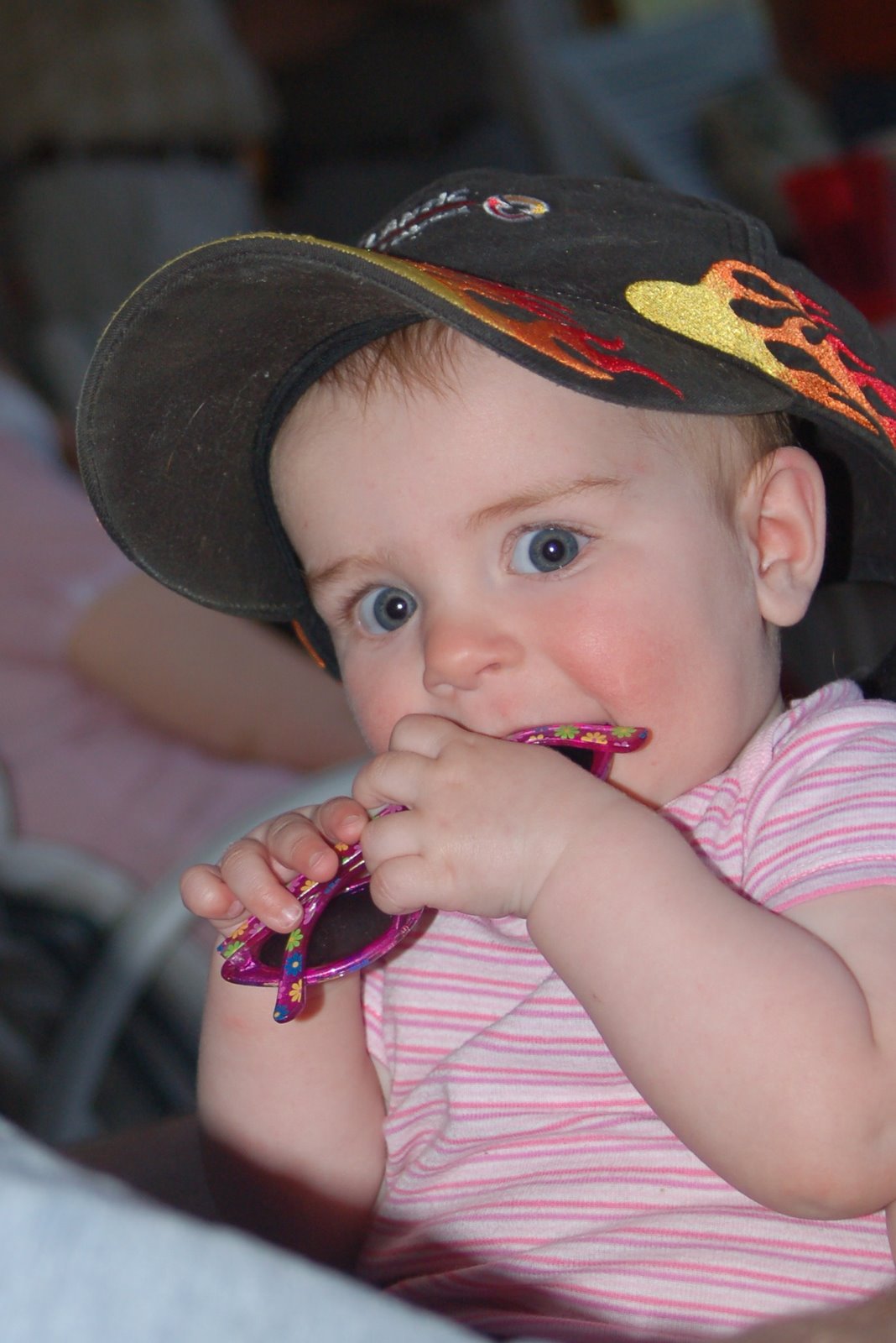 And from the same day, here’s Claire wearing Daddy’s hat. What a silly baby. Yesterday I babysat for the twins next door so Kim could spend the day with Nicholas on a field trip.