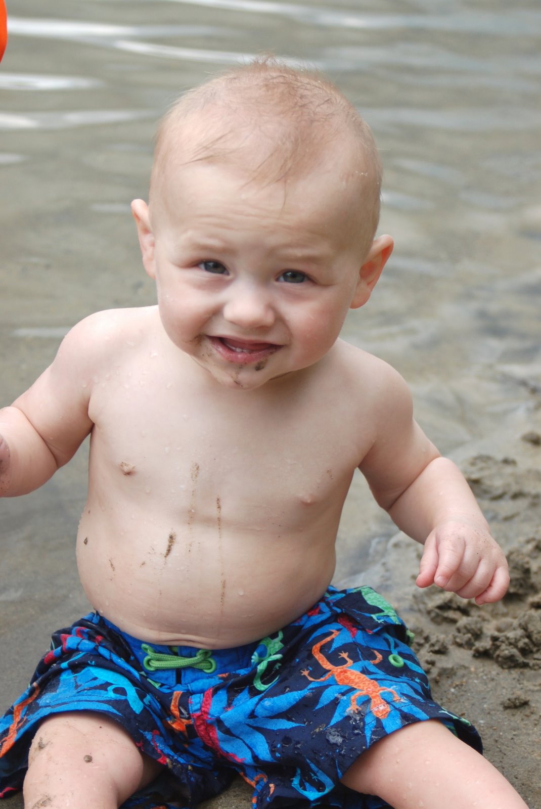 Well, our determination did pay off. The rain cleared and we had beautiful weather for almost 2 hours. Kim and I (and our copious amount of baby junk) had the entire beach to ourselves. There was lots of splashing, fish chasing and even a bit of sand eating sprinkled in for fun. A slide show of the images can be found below, just click play. To view all the pictures full size – click here. Enjoy and don’t forget to leave a comment about the cutest water babies around.