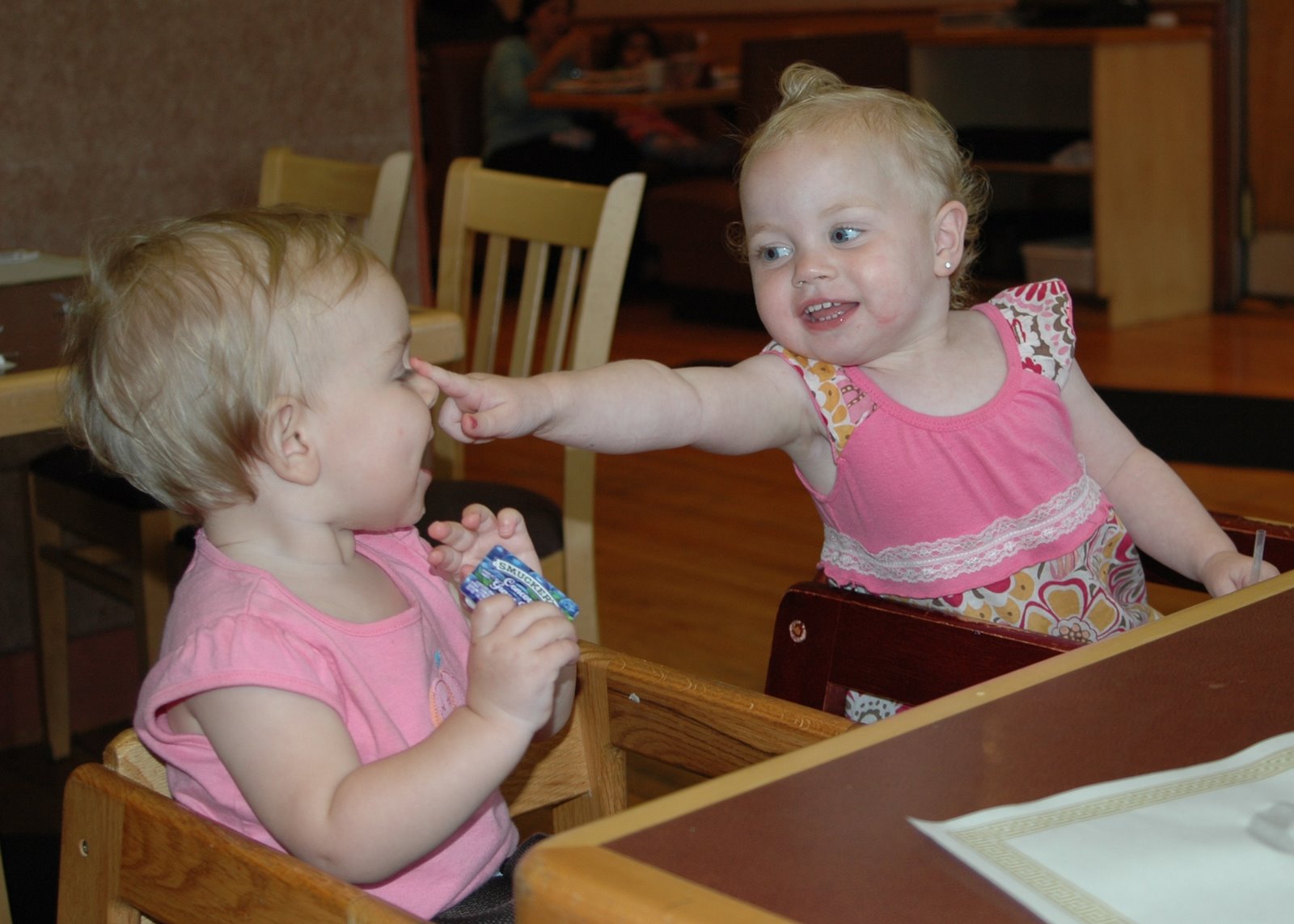 I’m posting in reverse here – these photos of the girls are from Tuesday morning after a class at The Little Gym. I have a sneaking suspicion Claire caught her cold from sucking on the uneven bars there. Great fun was had all around though, what a great program they have! I especially like the names of the groups – Claire’s age group is referred to as “birds” and Kaitlyn’s as “beasts.” We wound up taking our trial class during the “SuperBeast” class which is a multi-age group.
