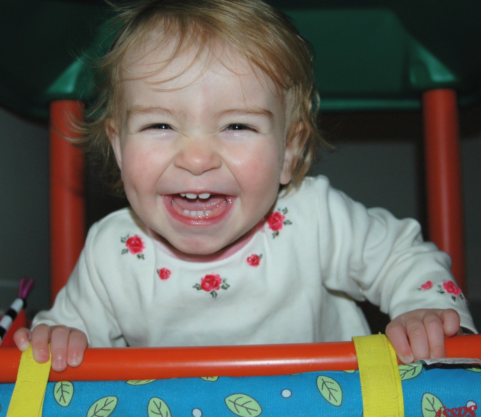 Look at those chompers!!! You're turning into a big kid now ClaireBear! I love your playroom–that was McManda's old room when she stayed there! =)