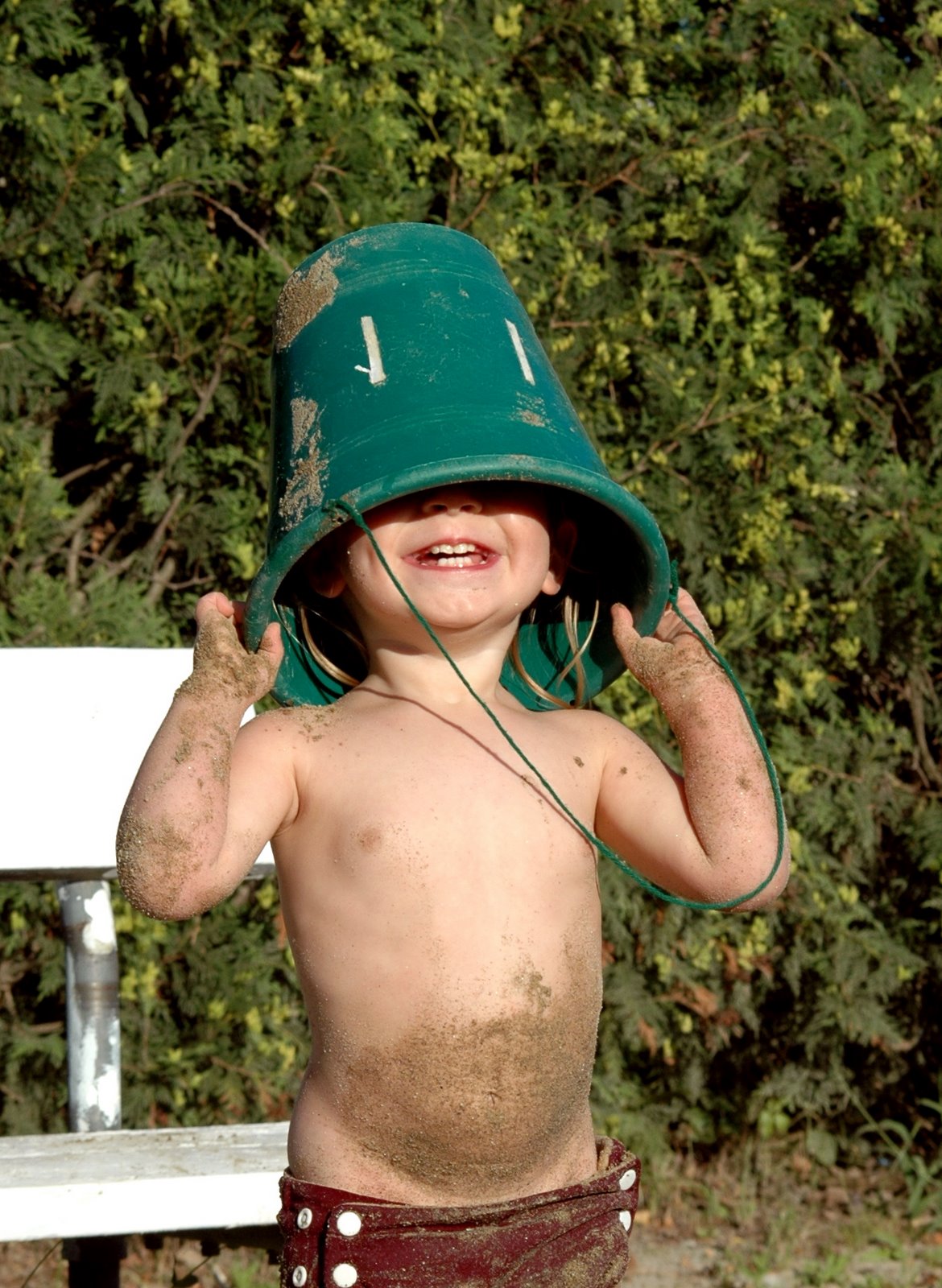 Sometimes you don’t even have to look Claire in the eye to see how much fun she has when playing outside. There’s nothing like a bucket and some sand to keep a toddler busy at the lake…as you can see from the amount of sand on Claire’s belly she enjoys “sand swimming” as much as lake swimming!