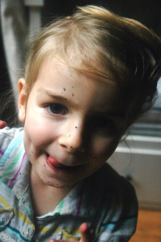 I took this shortly after our move to the new house when I let Claire loose with a bunch of paint and paper to keep her occupied while I neatly (ha!) unpacked our belongings. Unbeknownst to me she discovered spatter painting and seemed to have missed the paper but did a remarkable job on her face.