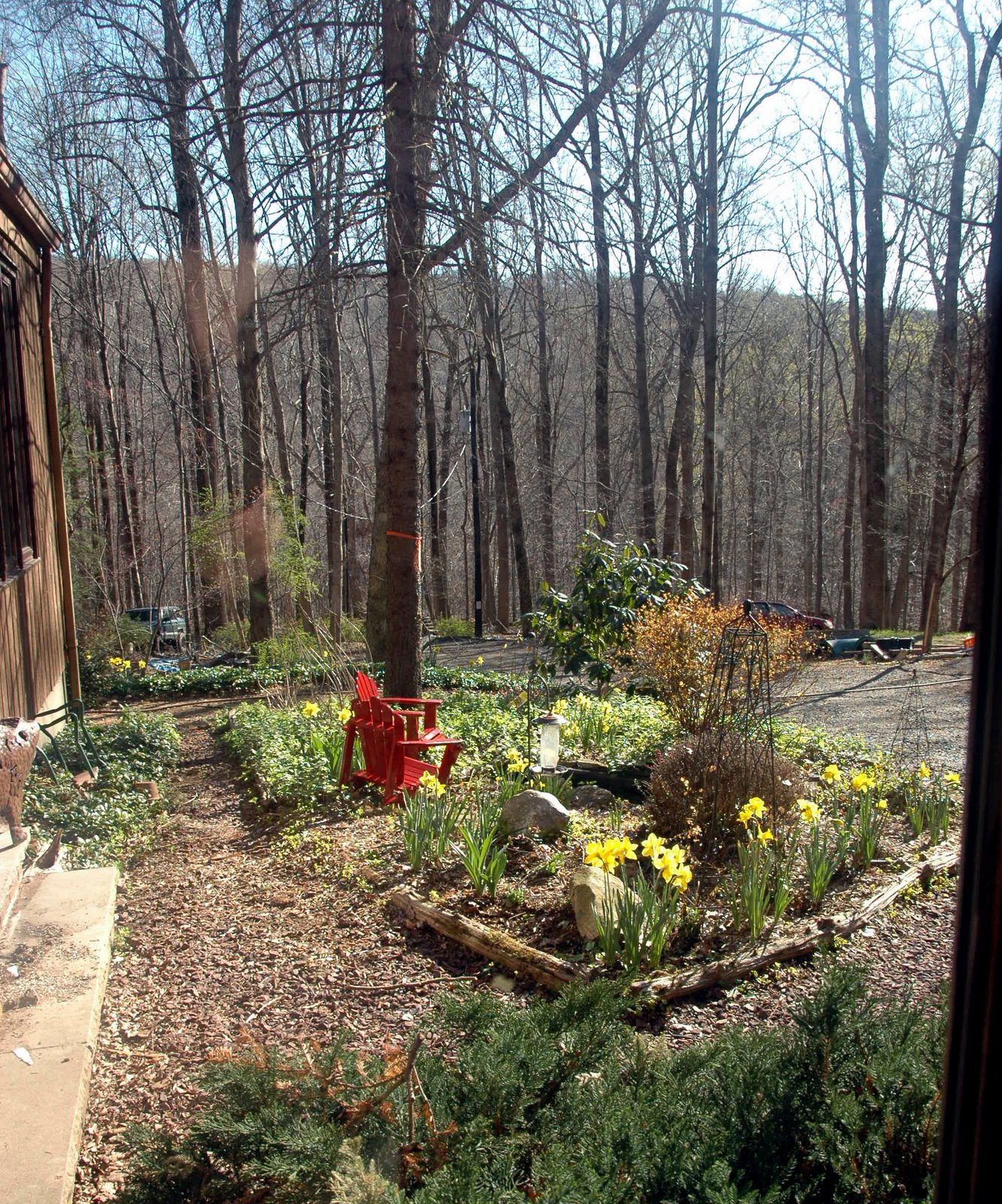 Between staring off into space at that mountain in the distance or our little patch of spring bulbs,  nothing is getting done. Next thing I know, I’m wandering outside, pulling weeds and dead-heading daffodils and chasing after Claire whose practically upside down trying to fish more tadpoles out of the pond. Another blog post, auto-saved and forever archived because I’ve lost my train of thought.