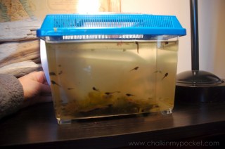Last night we noticed a tadpole in the tank had a leech on it. And then 2 and then 4…and I didn’t want to try and remove them because I thought detaching them might injure the poor guy more.