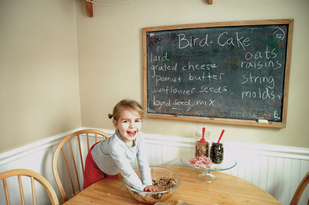 I house all sorts of experiments in my fridge (both intentional and unintentional, green shrimp, anyone?) but this hodgepodge of lard, peanut butter, sunflower seeds, cheese and bird seed was a success, both in “cutifying” our backyard and keeping my three year old occupied. If birds could talk I’m sure they would be raving about this recipe, our feeding stations were swarming with visitors and the birdie cakes were the hottest thing there.