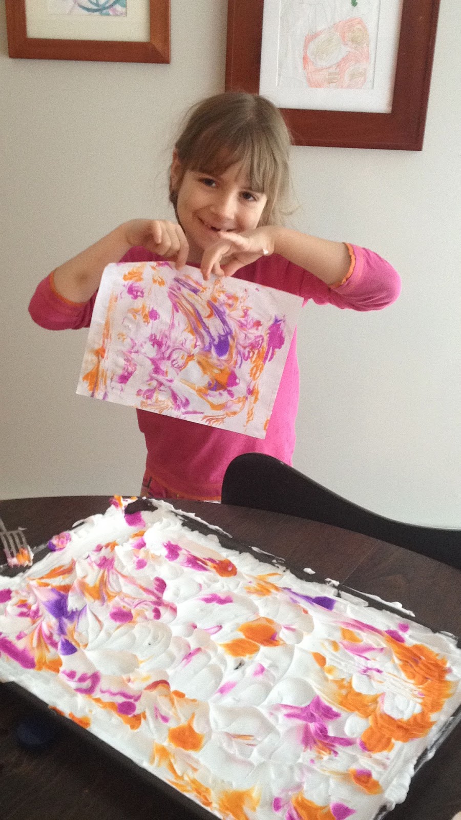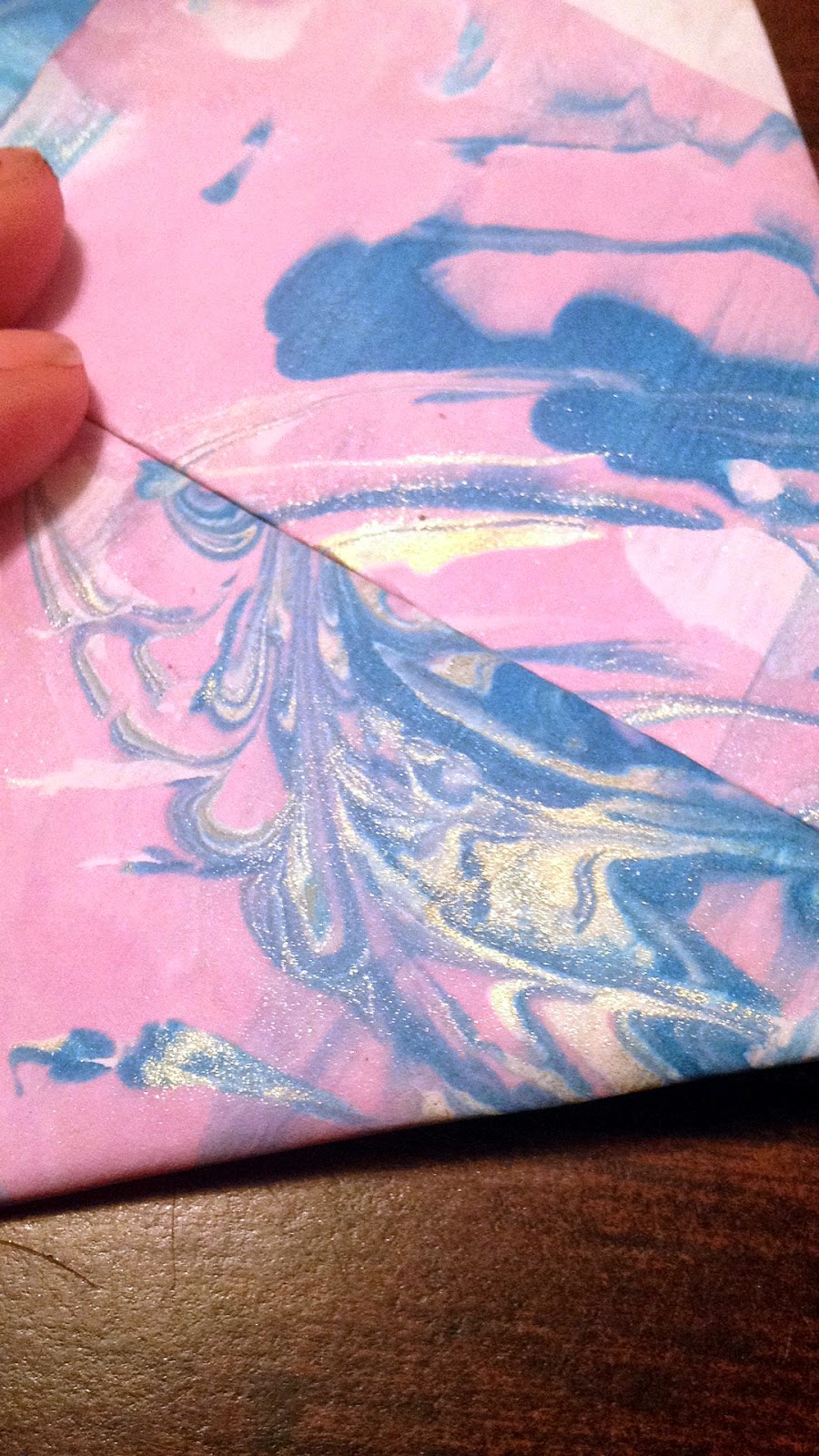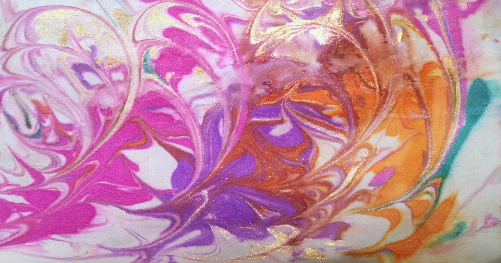 There are so many tutorials for making marbled paper, we tried the liquid starch method without much luck but had AMAZING results with shaving cream and liquid watercolors. For a little pizazz, we added gold glitter paint added to the mix and I think the shimmery results speak for themselves: