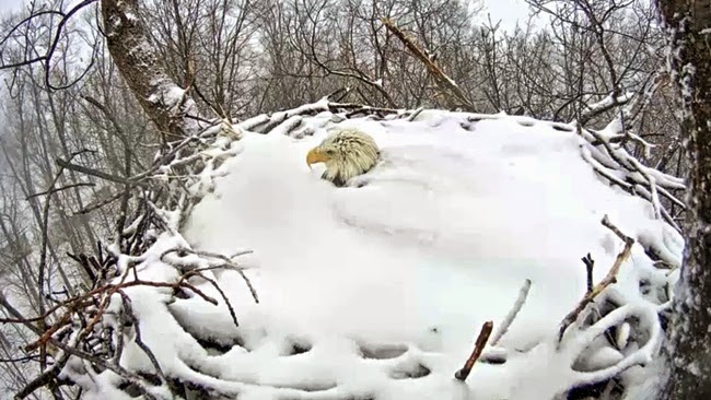 The amazing webcam has been set up by Pennsylvania Game Commission’s website. This is the eagle who was all over the news a few weeks ago, thousands tuned in to watch her stoically sit on her eggs while the snow rose higher and higher.